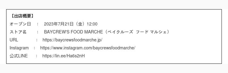Makuake 商品詳細 : https://www.makuake.com/project/baycrewsfoodmarche/