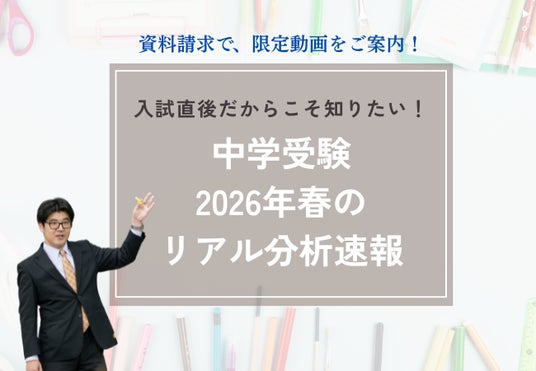難関校受験指導で高い合格実績を誇る「Z会の教室」では、首都圏・関西圏の2026年春の中学入試を徹底分析します。深い洞察を交えた「入試分析速報」を特典動画としてお届けすることで、新学年のスタートダッシュを強力にバックアップします。