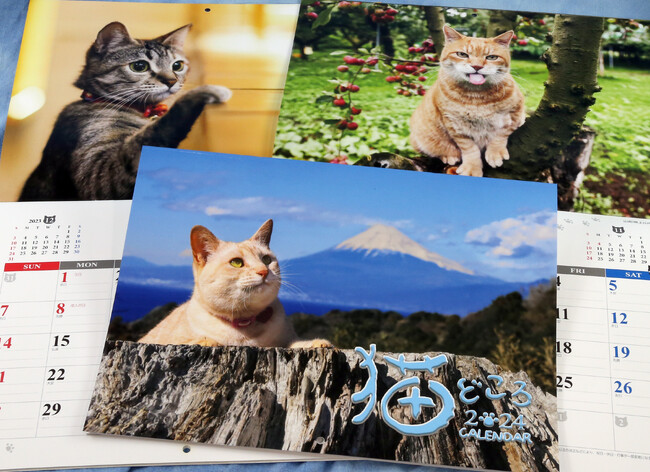 9年目を迎える2024年版の「猫どころカレンダー」は、西伊豆・恋人岬にある土産店の看板猫が表紙を飾りました。この猫は恋のキューピッドとしても大人気だとか。このほか全国各地の“猫どころ”で撮影された自然な姿の猫を毎月楽しめます。