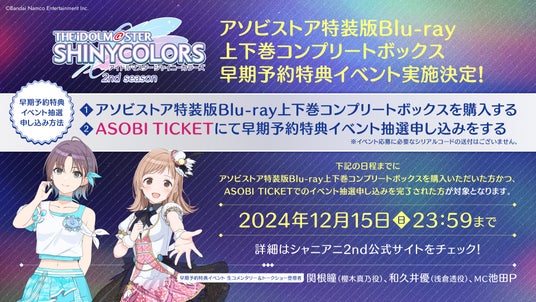 「アニメ『アイドルマスター シャイニーカラーズ 2nd season』アソビストア特装版Blu-ray上下巻COMPLETE BOX」早期予約特典イベントの対象期間は、12月15日(日)まで!