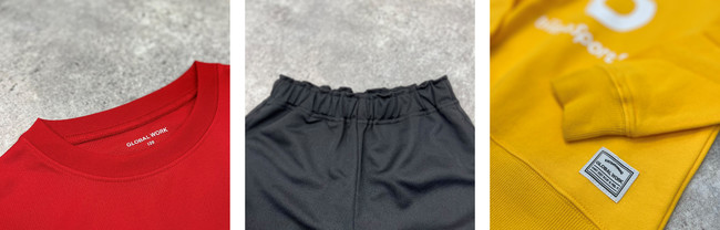 グローバルワークがブランド設立当初より展開しているキッズウェアで培った知見をもとに、子どもたちが元気に運動できるスクール着を開発。ユーザビリティに優れた商品開発にすべく、子育て世代のお客さまから寄せられた、キッズウェアに対する悩みを解消した事例を駆使しました。吸水速乾に優れた上質で着心地の良い素材の採用や、調整可能なゴムのウエストに仕立てたことにより運動時の身体の動かしやすさに配慮。また、多彩なカラー展開から、選ぶ楽しさを提案したいという要望に応えるべく全10色を展開し、多様性に富んだスクールらしさを表現しています。