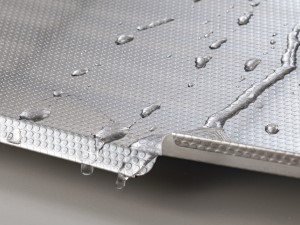 ステンレスのお手入れは水垢やウロコ汚れが取れにくく、面倒に思う人が多いようです。そこで、発想を転換してステンレス製の水受けトレーにエンボス加工を施しました。気になる水垢やウロコ汚れが目立ちにくくなります。また、水切りかご本体の水跳ね防止設計が、水滴を拭き取るなどの日々のお手入れの負担を軽減します。
