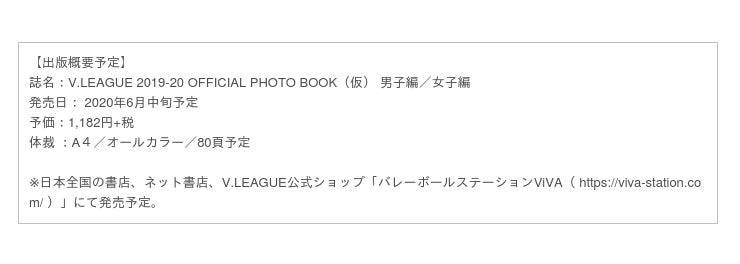 ♦公式PHOTO BOOKオフィシャルサイト https://www.piabooks.com/vleague2018-19