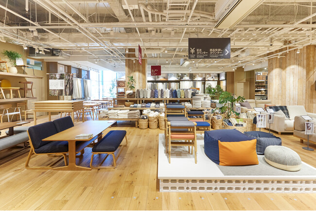 良品計画は、「感じ良い暮らしと社会」の実現のため、全国津々浦々で日常の基本を支える商品・サービスを提供することを目指し、地域の食品スーパー横など生活圏に出店を進めています。当店は、日用品や衣料品、食品などを取りそろえるほか、一部店舗でしか取り扱っていない家具もあり、IDEE※や「50年、100年と使い続けられる家具」を目指した無垢材の家具シリーズなども販売します。また、広い売場面積を生かし、ベッドやソファなど家具やマネキンを使ったシーン展示を増やすことで、無印良品の世界観を感じられる店舗を目指します。