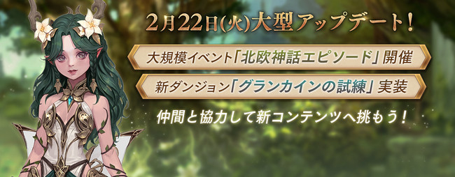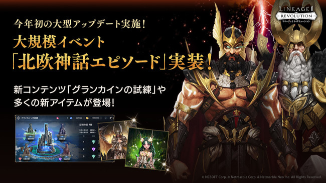 ネットマーブルは、スマートフォン向け超巨大マルチバトルRPG 『リネージュ2 レボリューション (Lineage2 Revolution)』において、2月22日(火)に、大規模イベントとなる「北欧神話エピソード」や1人用ダンジョンの新コンテンツ「グランカインの試練」を追加するアップデートを実施いたしました。