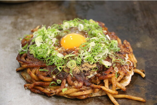 昼食は、昭和23年創業「まんぼ焼き」発祥の店「山本まんぼ」へ。まんぼ焼きとは、薄い粉もんの生地にうどんやそばを合わせたもの。「まんぼ」の由来、そして気になるお味は?
