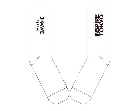 「INSPIRE TOKYO」と「J-WAVE」の文字をあしらったスポーツソックス。スニーカーやサンダルに合わせて普段使いにも!