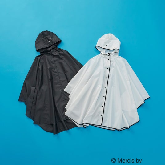 フード部分にはmiffyのフェイスデザインを施した、大人かわいいレインポンチョで雨の日も楽しく。同素材の収納ポーチ付となっています。