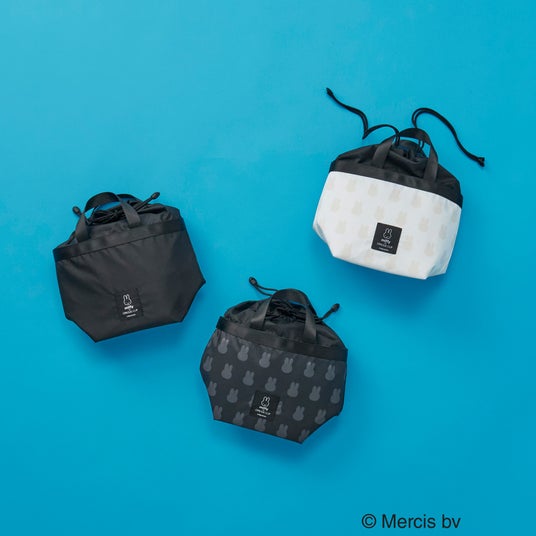 サブバッグにちょうどいいサイズで嬉しい!ランチバッグとしてはもちろん、ちょっとしたお出かけにもぴったりなミニバッグです。シックな黒とモノグラム調のmiffyシルエットがかわいい柄バージョンの3色展開です。上部が巾着になっているため、中身が飛び出さない仕様で安心です。
