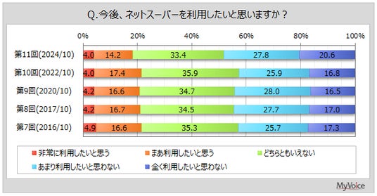 ネットスーパーの利用状況や意向、利用していない理由などについて聞いています。調査結果をお知らせします。