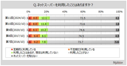 マイボイスコム株式会社(東京都千代田区、代表取締役社長:高井和久)は、11回目となる『ネットスーパー』に関するインターネット調査を2024年10月1日~7日に実施しました。