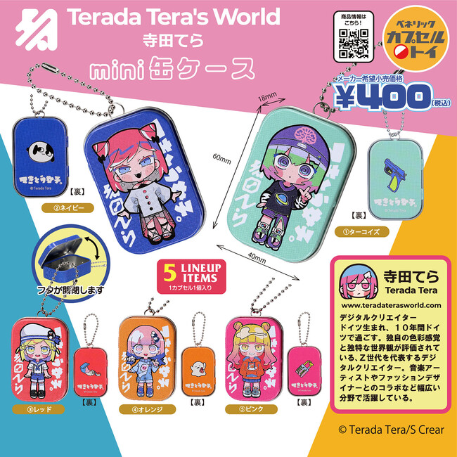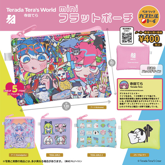 ベネリック株式会社(本社:東京都千代田区、社長:横山 武)は、デジタルクリエイター『寺田てら』とコラボレーションしたカプセルトイ「寺田てら miniフラットポーチ」(全5種類 / 1回400円・税込)と「寺田てら mini缶ケース」(全5種類 / 1回400円・税込)を2024年3月中旬より順次、全国のカプセルトイ自販機コーナーにて発売いたします。