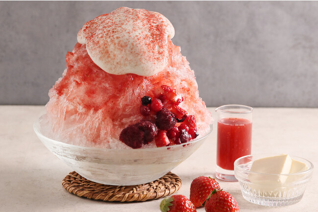苺のかき氷は、栃木産のとちおとめを贅沢に使った生シロップを使用。