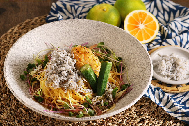 爽やかな香りの青蜜柑ぽん酢で、たっぷりのせたしらすを愉しむ期間限定の冷製パスタ。