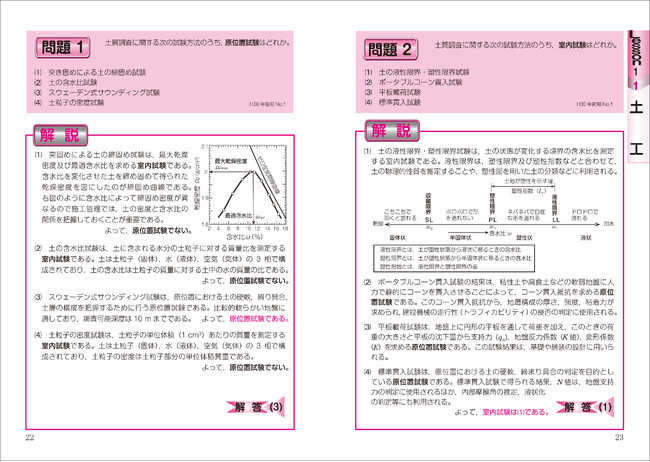 また、最近の問題から厳選した既出問題の選択肢すべてにも詳細な解説を加え、『2級土木施工管理技術検定 第1次検定 2024年版』同様に、無駄の少ない効率よい学習ができるように構成しています。