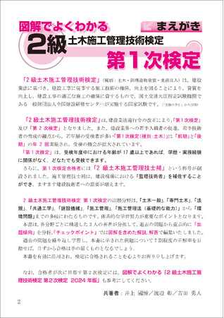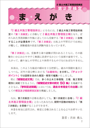 本書は国土交通大臣より認定される2級土木施工管理技士を目指す方のための、第1次検定(学科)・第2次検定(実地)のテキスト&問題集です。