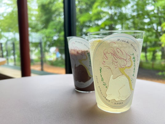 本展では、そんな『眩しい木もれ日』をテーマにした作品の展示販売のほか、プリント作品、アーティスト本人が手掛けたオリジナルグッズの販売も行います。また、「南夏希コラボカフェ」として、南夏希氏が大好きなドリンクレシピを再現し、「眩しい木もれ日カップ」に注いだ、オリジナルドリンクメニュー「レモネードソーダ」「モカ&オレンジ」が期間限定で登場します。