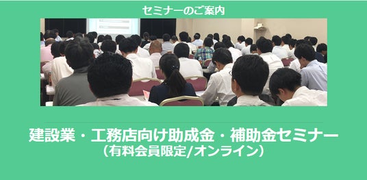 「建設業・工務店向け助成金・補助金セミナー」を配信します!