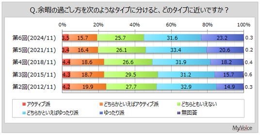 マイボイスコム株式会社(東京都千代田区、代表取締役社長:高井和久)は、6回目となる『余暇の過ごし方』に関するインターネット調査を2024年11月1日~7日に実施しました。
