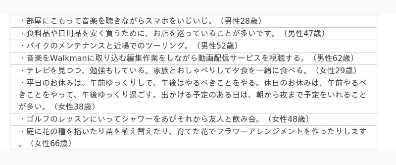 余暇の過ごし方や一緒に過ごす人、満足度などについて聞いています。調査結果をお知らせします。