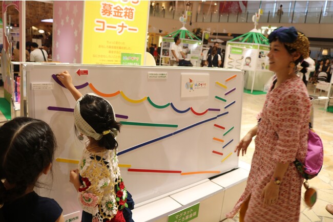 毎回大好評のおもしろ募金箱コーナーでは『コロコロ募金箱』(画像)、『ドレミファ募金箱』、『メロディ募金箱』、『くるくる募金箱』に続き、新型のおもしろ募金箱も登場。募金は全てNPOフェスティバルへ出展の社会貢献団体に等分に寄付させていてだきます。