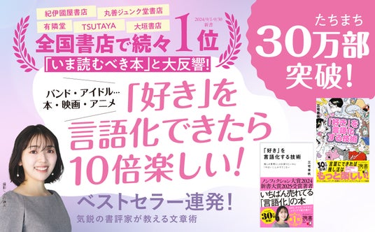 株式会社ディスカヴァー・トゥエンティワン(本社:東京都千代田区、代表取締役兼社長執行役員:谷口奈緒美)が2024年7月31日に刊行した、文芸評論家・三宅香帆氏による書籍『「好き」を言語化する技術』は、このたび30万部を突破いたしました。