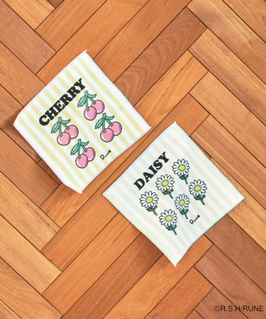 POPなイラストとストライプが特徴なハンカチは、カバンに仕込ませておくだけで気分が上がります。