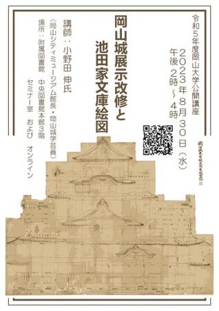 国立大学法人岡山大学(本部:岡山市北区、学長:那須保友)の附属図書館では、2023年8月30日(水)14:00~16:00に公開講座「岡山城展示改修と池田家文庫絵図」を岡山シティミュージアム館長・岡山城学芸員の小野田伸氏をお招きし、現地開催とオンライン同時配信のハイブリッド方式で実施予定です。