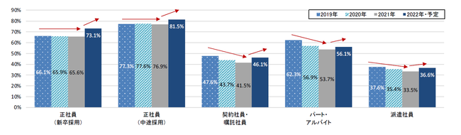 【図1】<雇用形態別】>2019年~2021年の採用実績と2022年の採用予定
