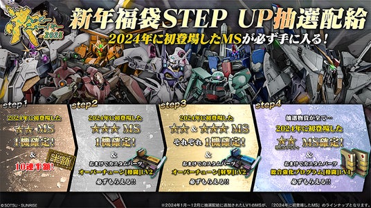 2024年に初登場したMSが必ず手に入る、「新年福袋STEP UP抽選配給」を開催いたします。