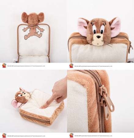 本物のパンのようなふんわりやさしい触り心地で、ジェリーの表情がとってもキュートなポーチ。内側にはぺしゃんこになったジェリーの体がプリントされています♪ ダブルジップで使いやすさと、手ごろなサイズ感にもこだわりました。コスメやアクセサリー、お菓子などを入れるのに便利です。