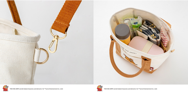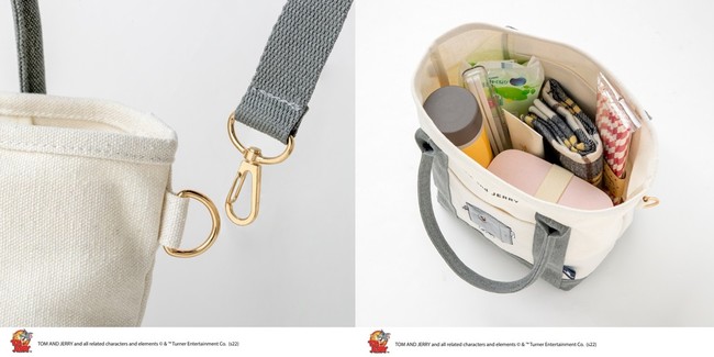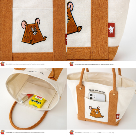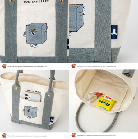 「金庫につぶされたトム」と「チーズを丸呑みしたジェリー」の2種を展開する2WAYトートバッグは、どちらも年齢を問わず持ちやすい、シンプルかつ大人かわいいデザイン。外側と内側にポケットがあり、お弁当箱も入るサイズなので、通勤やお出かけに便利です。取り外し可能なショルダーストラップ付きで、手持ちにも肩掛けにも対応しています♪