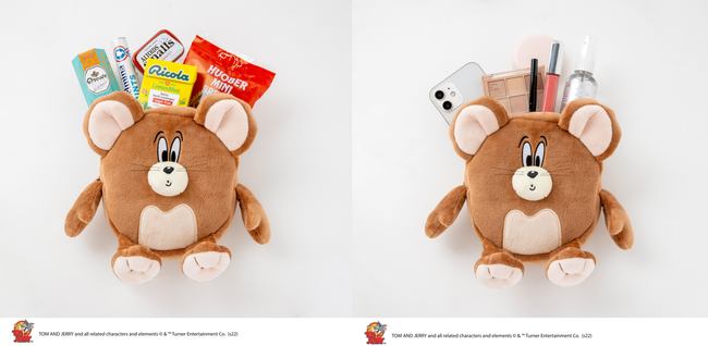 ふわふわな手触りとあどけない表情に癒やされるポーチはトムver.とジェリーver.の2種。どちらも絶妙なサイズ感で便利な内ポケットも付いていて、小物の持ち運びにぴったりです。ボールチェーンも付属しているので、バッグに付けて一緒にお出かけしたり、インテリアとしてお部屋に飾ったり、アイデア次第でいろいろな使い方ができます♪