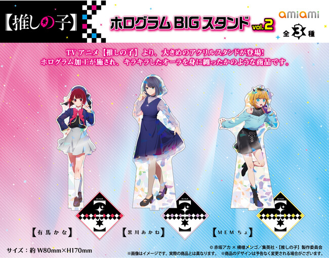 「ホログラムBIGスタンド Vol.2」では「有馬かな」「黒川あかね」「MEMちょ」がラインナップ