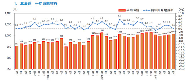 ■ 北海道の平均時給は1,007円(前年同月1,006円、前月1,004円)