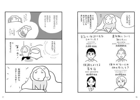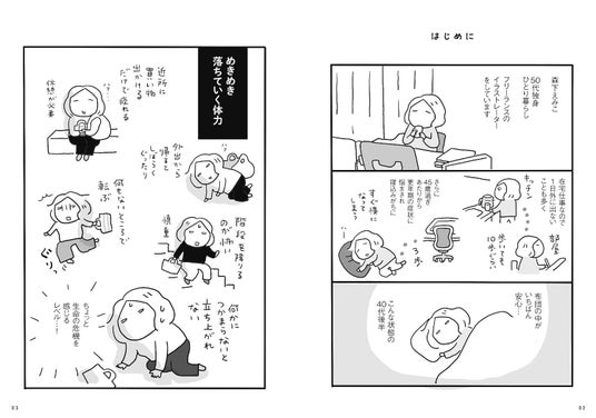50代のマンガ家が、疲れやすさや更年期の不調、気圧や天気による不調と向き合いながら、寝ながらできるゆるい運動や、食べて元気になる薬膳など、きつい運動だけに頼らない体力アップの習慣を、専門家に聞きながら実践!無理せず、頑張りすぎず、自分のペースで体力アップを目指します。
