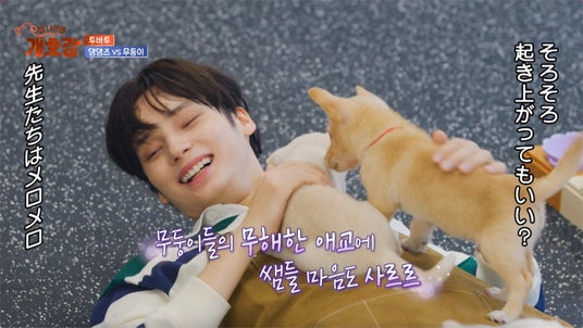 順調な滑り出しと思いきや、スビンが「うんちのにおいがする…」とつぶやいた途端、6匹の子犬が次々と排泄。2人はトイレットペーパーで必死に片付けるも、排泄物を口に入れてしまう子犬も現れるなど、大トラブルに見舞われます。奮闘の末、ヒュニンカイは「排泄物の片付けなら韓国一になれます」と冗談めかして語り、その場でぐったりと横になってしまいました。膝の上で眠る子犬を見つめながら「初めての感情を覚えました。幸せという言葉では足りません」と、優しくつぶやく一幕も。