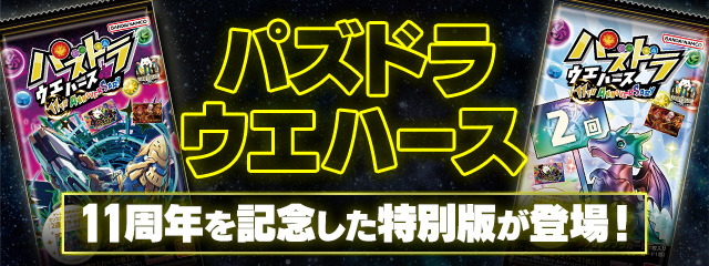 ご好評いただいておりますパズルRPG『パズル&ドラゴンズ(通称、パズドラ)』にて、「+297プロジェクト」の最新グッズとして「パズドラくじ~いつも遊んでくれてありがとー!!~(以下、パズドラくじ)」と、「パズドラウエハース 11th ANNIVERSARY(以下、パズドラウエハース)」が登場です。