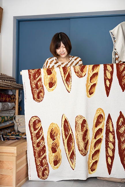 食をテーマにしたテキスタイルブランド「gochisou」。焼きたてのパンが描かれた美味しい布の世界へご案内します。