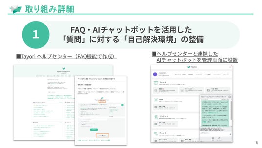 Tayoriが実践する「おもてなし」のカスタマーサポートでは、FAQやAIチャットボットを活用し「自己解決」に導くことが重要と考えています。