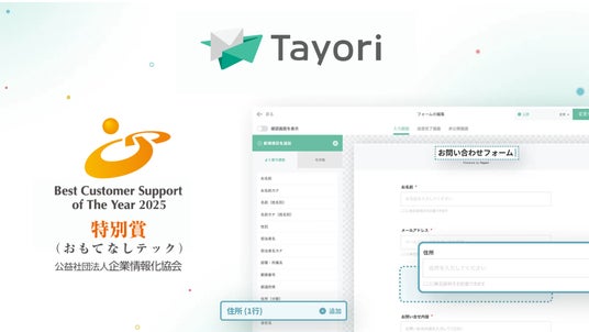 株式会社PR TIMES(東京都港区、代表取締役:山口拓己、東証プライム:3922、以下:PR TIMES)は、運営するカスタマーサポートツール「Tayori」(読み:タヨリ)が、2025年7月7日(月)に公益社団法人企業情報化協会が発表した『カスタマーサポート表彰制度2025年』において、特別賞「おもてなしテック」を受賞いたしました。