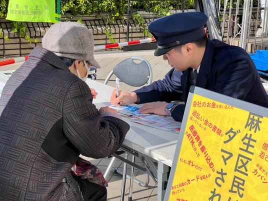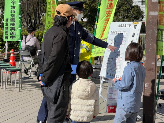 - 麻生警察署員による防犯に関するアナウンスととともに、犯罪に関する注意喚起チラシ(約1,000部)を配布しました。警察署員による防犯相談受付では、かかってきた詐欺と思われる電話についてなど、具体的な相談を持ち掛ける方が見受けられ、住民の方から情報提供を受ける重要な場となりました。