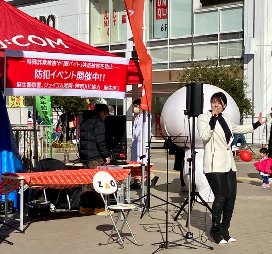 - 東京都町田市出身のソウルシンガーソングライター「彩ショル」さんが町田署 特殊詐欺防止ソング「ダメ!ダメ!ソング」などを熱唱。多くの通行者が耳を傾けました。