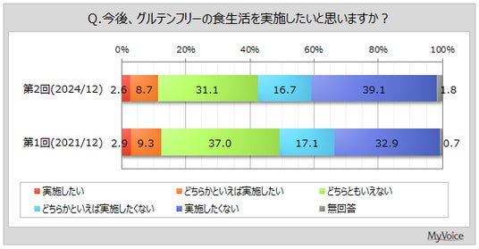 マイボイスコム株式会社(東京都千代田区、代表取締役社長:高井和久)は、2回目となる『グルテンフリー』に関するインターネット調査を2024年12月1日~7日にMyVoiceのアンケートモニターを対象に実施し、9,246件の回答を集めました。調査結果をお知らせします。