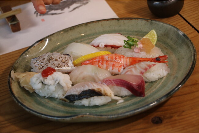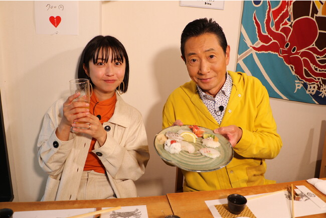 そして、メインのお寿司が登場!たこやエビ、ハマチなど、極上の握り寿司の数々に舌鼓を打つ2人です。