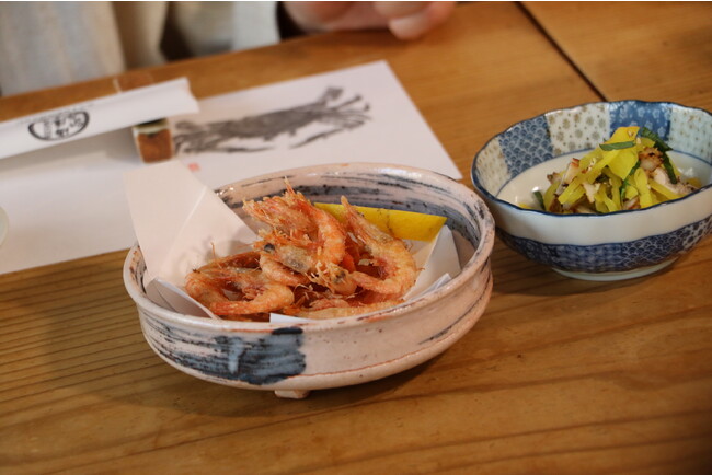 まずはエビの唐揚げをはじめとした小鉢に、ある方法で旨味が増すという造りに感激。