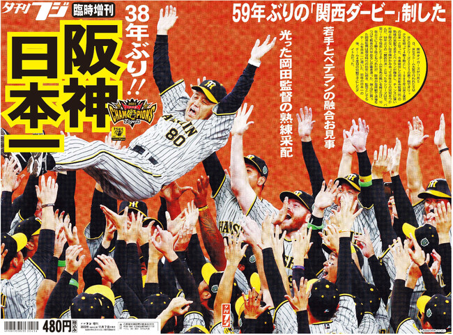 夕刊フジ(産経新聞社発行)は、岡田彰布監督率いる阪神タイガースの38年ぶりの日本一を記念し、クライマックスシリーズ(CS)ファイナルと日本シリーズの激戦を振り返る臨時増刊「阪神日本一特別号」を関西圏の駅売店やネットショップ「産経iD」などで11月7日(火)に発売します。