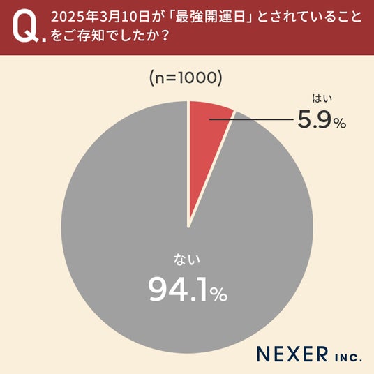 5.9%の方が、2025年3月10日が「最強開運日」とされていることを「知っている」と回答しています。