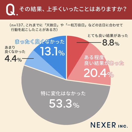 ■29.2%が「天赦日」や「一粒万倍日」などの吉日に合わせて行動した結果、「良い結果があった」