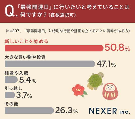 ■「最強開運日」に行いたいこと、50.8%が「新しいことを始める」